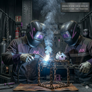 Descripción del concurso: Demostrar la capacidad de trabajo en equipo, la gestión del tiempo y la destreza técnica en el proceso MIG(Microalambre), fabricando una estructura simétrica y resistente utilizando únicamente tramos de cadena pre-cortados.